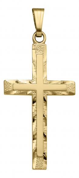 14K Yellow Gold Filled 24" Beveled Edge Cross