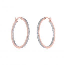 10K Rose and White 25mm Diamond Cut Hoop Earrings
