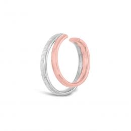 10K Rose and White Gold Two Tubes Diamond-Cut Cuff Earring