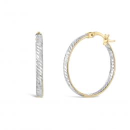 10K Rose and White Gold Diamond Cut Hoops