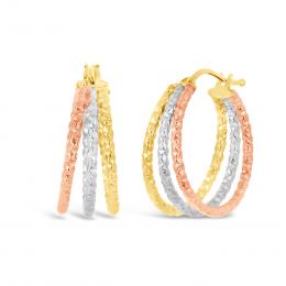 10K Tri-Colour Three Tubes Diamond-Cut Hoop Earrings