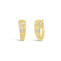 10K Yellow and White Gold Stampato Diamond Cut Earrings