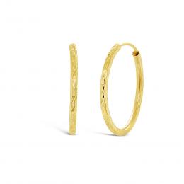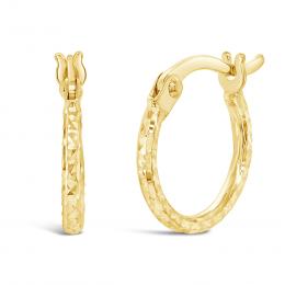 10K Yellow Gold Hammered Diamond Cut Hoop Earrings