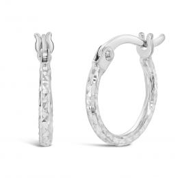 10K White Gold Hammered Diamond Cut Hoop Earrings