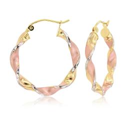 14K Tri Gold 25mm Twisted Hoop Earrings
