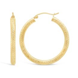 14K Yellow Gold 30mm Diamond Cut Hoop Earrings