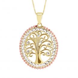 10K Tri-Colour Gold Oval Tree Pendant