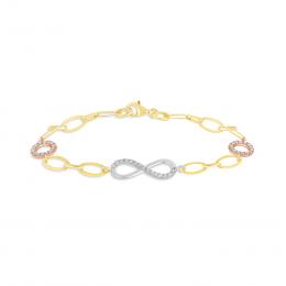 10K Yellow Gold White Gold and Rose Gold Cubic Zirconia Infinity Bracelet