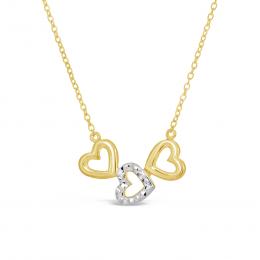 10K Yellow and White Gold Triple Heart