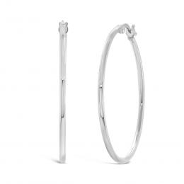 14K White Gold 1.5mm x 30mm Round Tube Polished Hoops