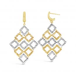 10K Tri-Colour Gold Geometric Drop Earrings