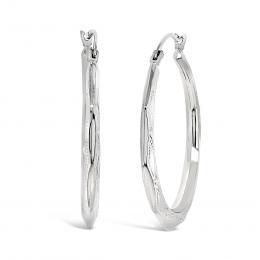 10K White Gold 14x21mm Braided Pattern Creole Earrings