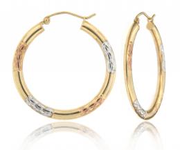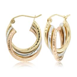 10K Tri-Colour Gold Diamond Cut Hoop Earrings