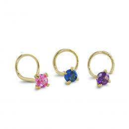14K Yellow Gold Three Pieces Created Sapphire Nose Stud Set