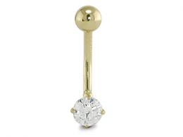 14K Yellow Gold 5mm Cubic Zirconia Belly Ring