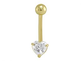14K Yellow Gold 6mm Heart Cubic Zirconia Heart Belly Ring