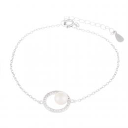 Sterling Silver 6-6.5mm Pearl Halo Bracelet