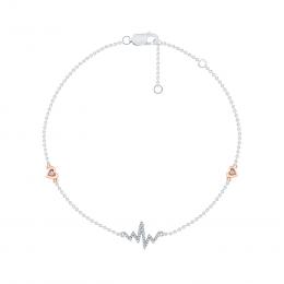 Sterling Silver 10K Rose Gold Diamond Heartbeat Bracelet