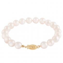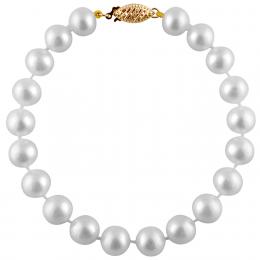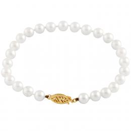 14K Yellow Gold 5-6mm White Akoya Pearl 7.25" Bracelet