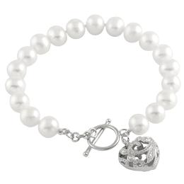 Sterling Silver 8-9mm White Freshwater Pearl Bracelet