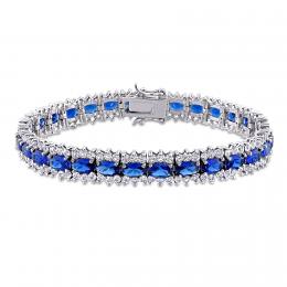 Julianna B Sterling Silver Oval Created Blue and White Sapphire Bracelet