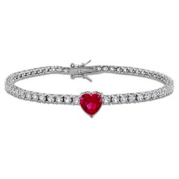 Julianna B Sterling Silver Created Ruby & Created White Sapphire 7.25" Bracelet