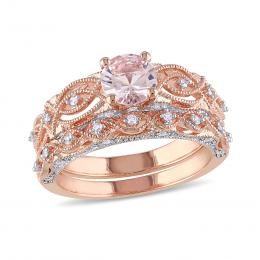 Julianna B 10K Rose Gold 0.14CTW Diamond & Morganite Bridal Set