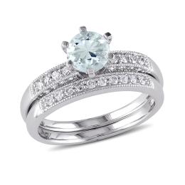 Julianna B 10K White Gold 0.33CTW Diamond & Aquamarine Bridal Set