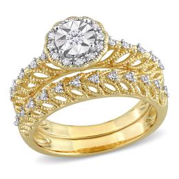 Julianna B Yellow Plated Sterling Silver 0.32CTW Vintage Look Diamond Bridal Set