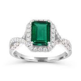 Sterling Silver Created Emerald & Created White Sapphire Ring
