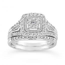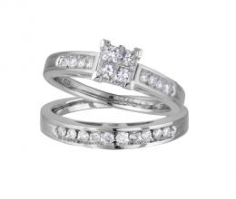Diamond Revelations 14K White Gold 0.95CTW Princess Cut Halo Bridal Ring