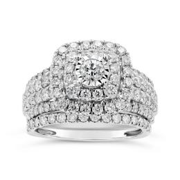 Diamond Revelations 14K White Gold 0.95CTW Princess Cut Halo Bridal Ring