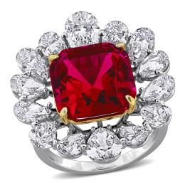 Julianna B 18K White & Yellow Gold Created Ruby & Lab-Grown Diamond Flower Ring