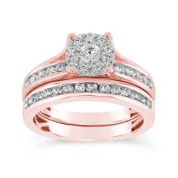10K Rose Gold 1.00CTW Diamond Bridal Set