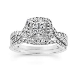 Diamond Revelations 14K White Gold 0.95CTW Princess Cut Halo Bridal Ring