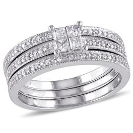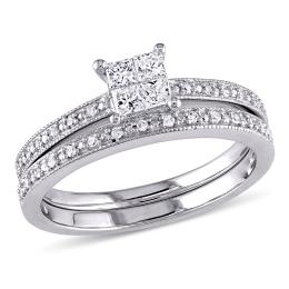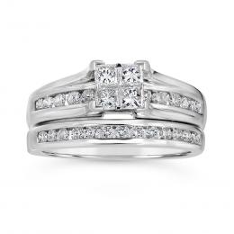 14K White Gold 1.00CTW Princessa Bridal Set