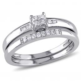 Julianna B Sterling Silver 0.18CTW Diamond Bridal Set