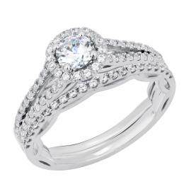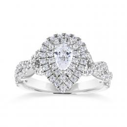Diamond Revelations 14K White Gold Pear Shape Halo Ring 0.95CTW I2/IJ