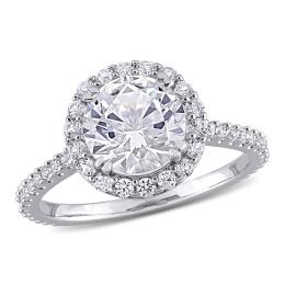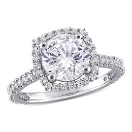 Julianna B 10K White Gold Created White Sapphire & Diamond Engagement Ring