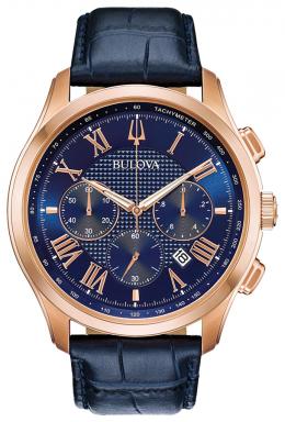 Bulova Men's Rose Gold Blue Dial Blue Leather Strap Classic Watch