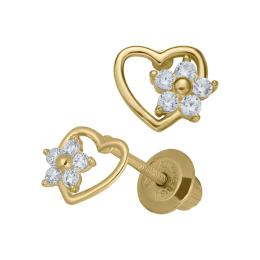 Children's 14K Yellow Gold Filled Cubic Zirconia Heart Flower Earrings