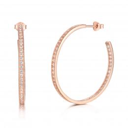 Sterling Silver Rose Plated Cubic Zirconia Inside/Outside Hoop Earrings