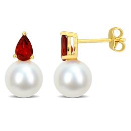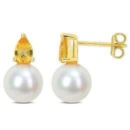 Julianna B Yellow Plated Sterling Silver Citrine 8.5-9MM Pearl Earrings