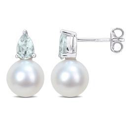 Julianna B 10K White Gold Created Blue Sapphire & 8-8.5MM Pearl Earrings