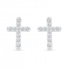 10K White Gold 0.10CTW Diamond Cross Earrings
