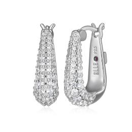 ELLE "Citadel" Rhodium Plated Cubic Zirconia Oblong Shape Hoop Earrings