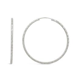 10K White Gold 2X10mm Diamond Cut Hoop Earrings