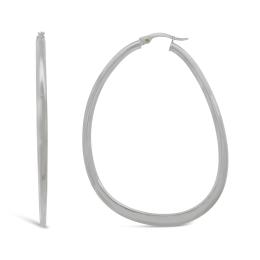 10K White Gold 2X20mm Diamond Cut Hoop Earrings