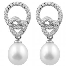 Sterling Silver 8-8.5mm Freshwater Pearls & Cubic Zirconia Earrings