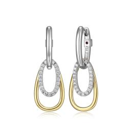 Elle Double Oval Gold Plated Link Earring with Cubic Zirconia